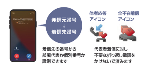 また、代表着信等に対して他者が応答した場合、他者が応答したか判断できるアイコン表示されるため、