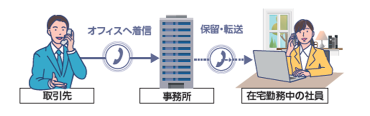 テレワーク中の社員の内線番号をダイヤルするだけでスマートフォンへそのまま転送することができるので、